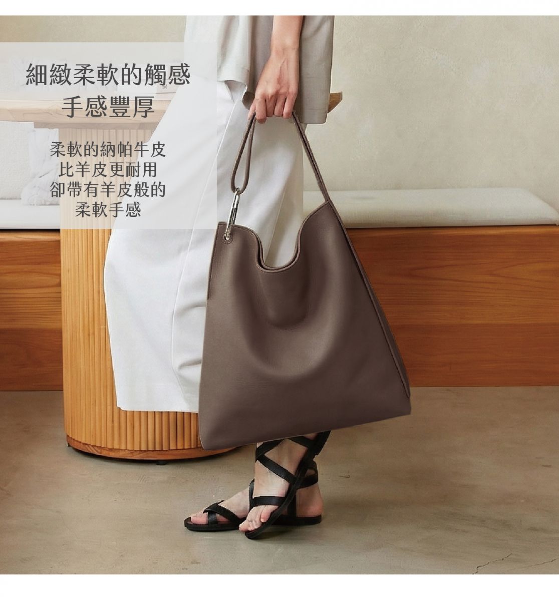 肩背時包身自然垂墜,線條柔和又具存在感。