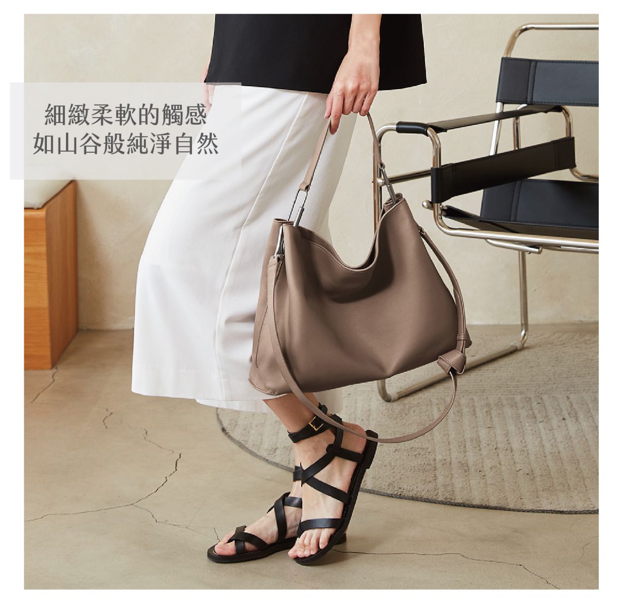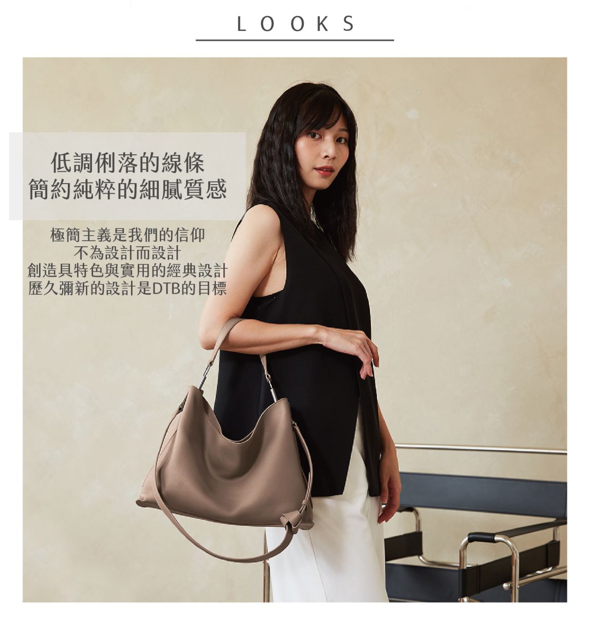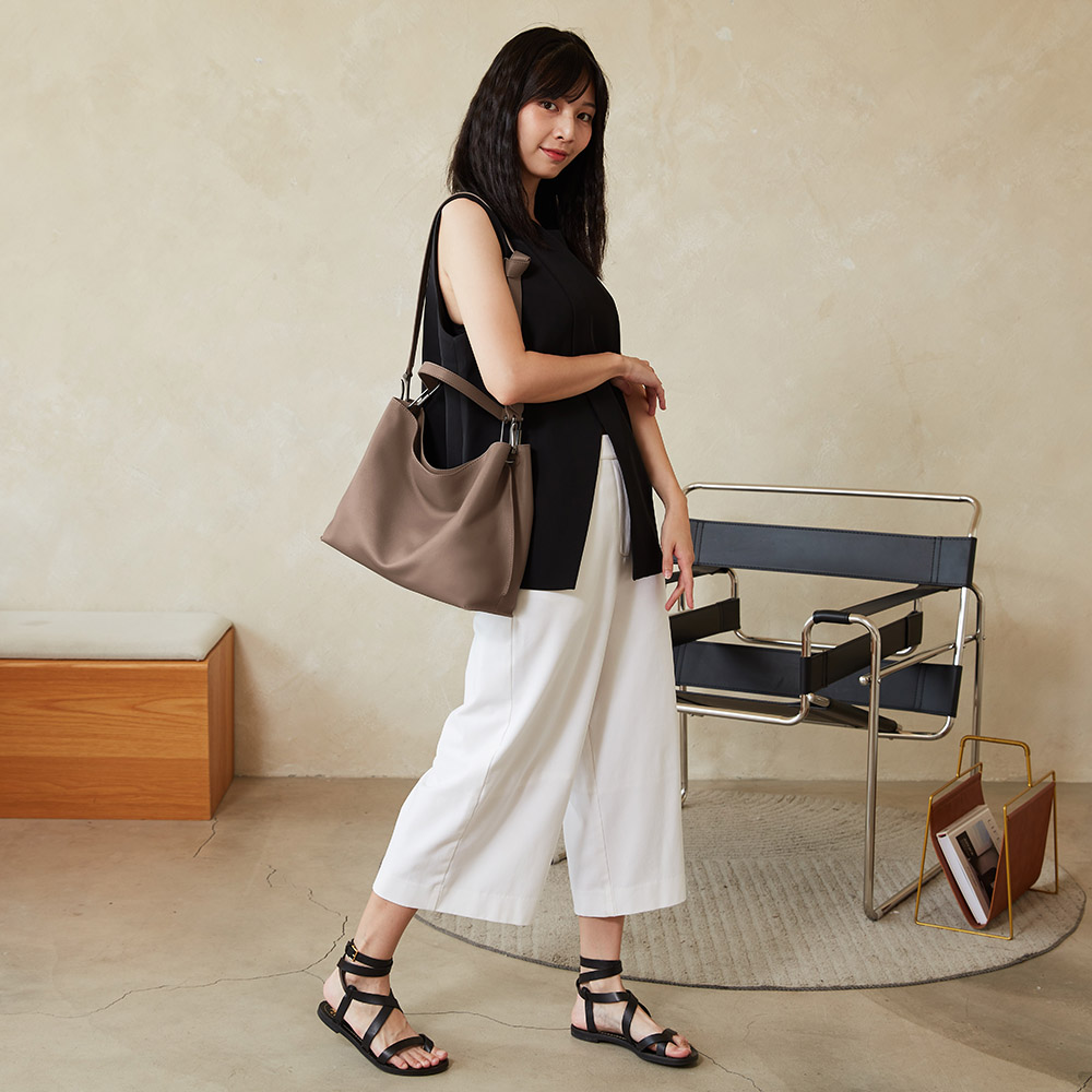 獨特的扭結背帶設計,簡約俐落。