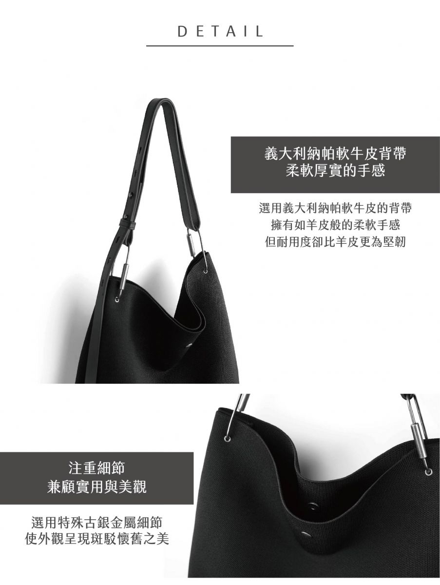採用高密度針織技法打造柔軟袋身,呈現自然垂墜線條與輕盈手感。