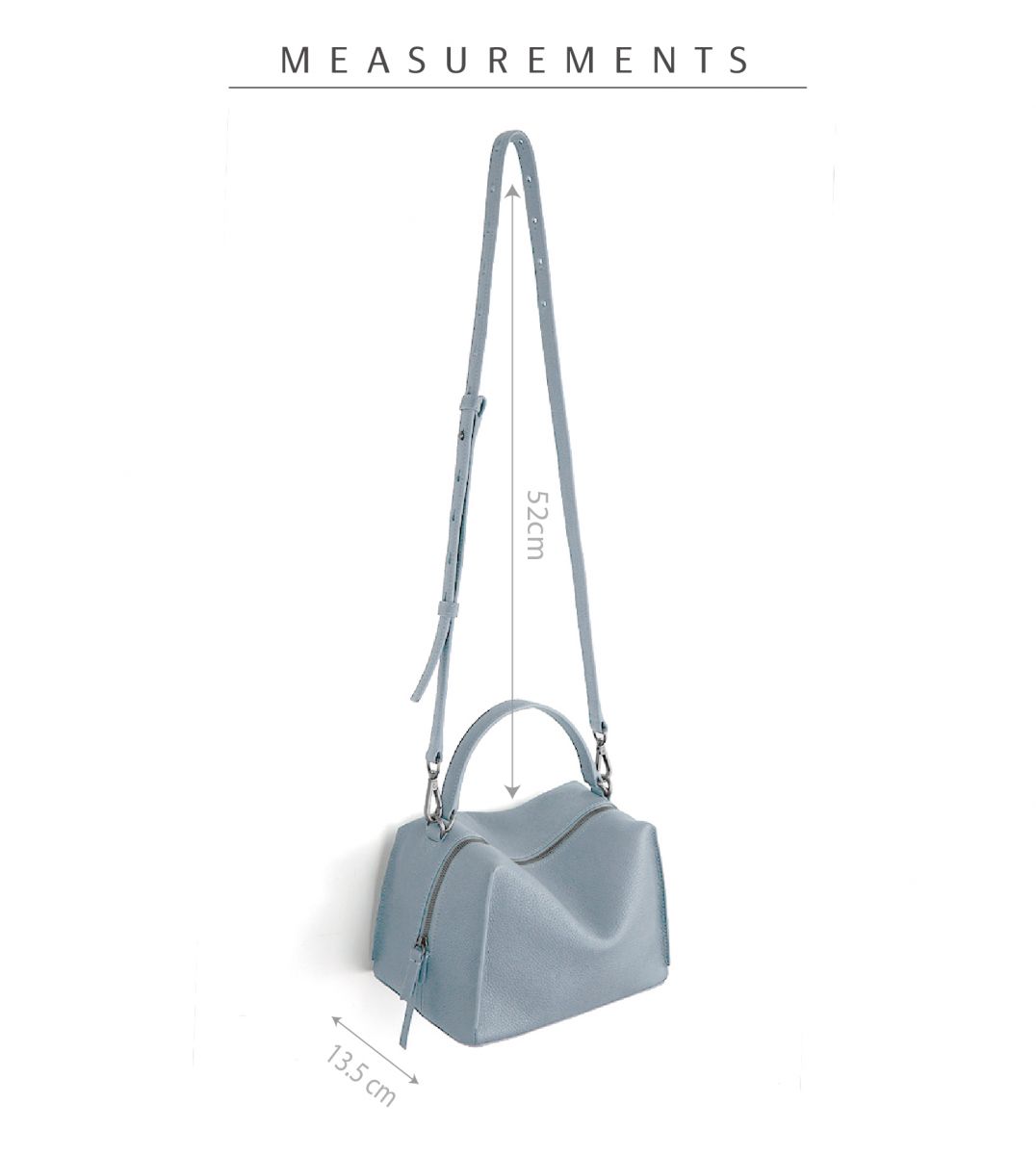 選用小荔枝紋牛皮,具自然顆粒感、皮革存在感明顯,呈現霧面質地,耐磨且更不易顯刮。 礦物藍以藍灰色調呈現冷靜與都會感,霧感紋理更顯層次,非常適合簡約穿搭。 - 手提/側背/斜背三用 - 可拆、可調節背帶 - 外部雙拉頭拉鍊夾層 - 內部拉鍊袋 - 小荔枝紋皮革耐用且不易顯刮 顏色:Mineral Blue 礦物藍