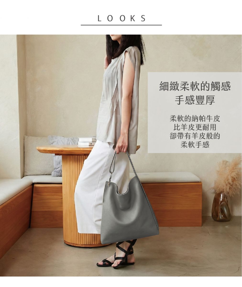 肩背時包身自然垂墜,線條柔和又具存在感。